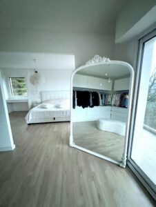 N•2• La chambre/ bureau est composé d'un canapé-lit des plus confortable en 160x200 ainsi que d'un bureau avec écran incurvé pour pouvoir travailler confortablement. Elle donne également accès au grand balcon par une grande baie vitrée.